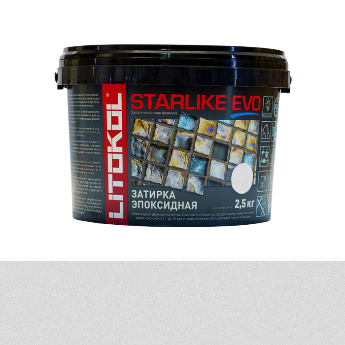 LITOKOL STARLIKE EVO - двухкомпонентный кислотостойкий и щелочестойкий эпоксидный состав для заполнения межплиточных швов шириной от 1 до 15 мм. При производстве эпоксидных составов STARLIKE EVO компанией LITOKOL используется запатентованная технология, при которой цвет состава задается окрашиванием частиц наполнителя. Отсутствие в фуге пигментов в свободном состоянии предотвращает окрашивание плитки в процессе заполнения швов. Благодаря своей пластичности состав легко наносится, полностью заполняя швы. После отверждения на поверхности LITOKOL STARLIKE EVO полностью отсутствуют трещины или раковины. Необычайная лёгкость очистки поверхности плитки после затирки швов, даже по сравнению с обычными цементными затирками.